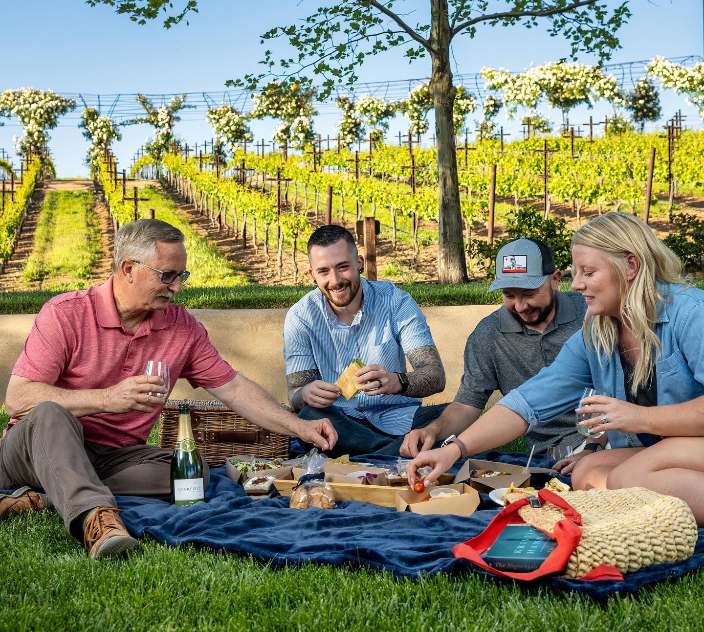 Nestled among vineyards, trees, and rolling hills, Starfield Winery offers the perfect backdrop for this experience. Whether you arrive early for a wine tasting, wander the walking paths, or simply enjoy the open sky, the land itself becomes part of the gathering, inviting you to slow down and soften.
